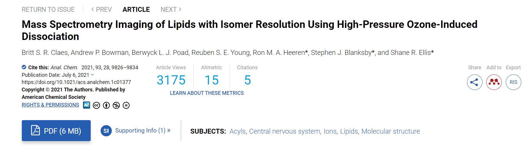 使用美國2B 106-L的論文:使用高壓臭氧誘導解離的異構體分辨率的脂質質譜成像
